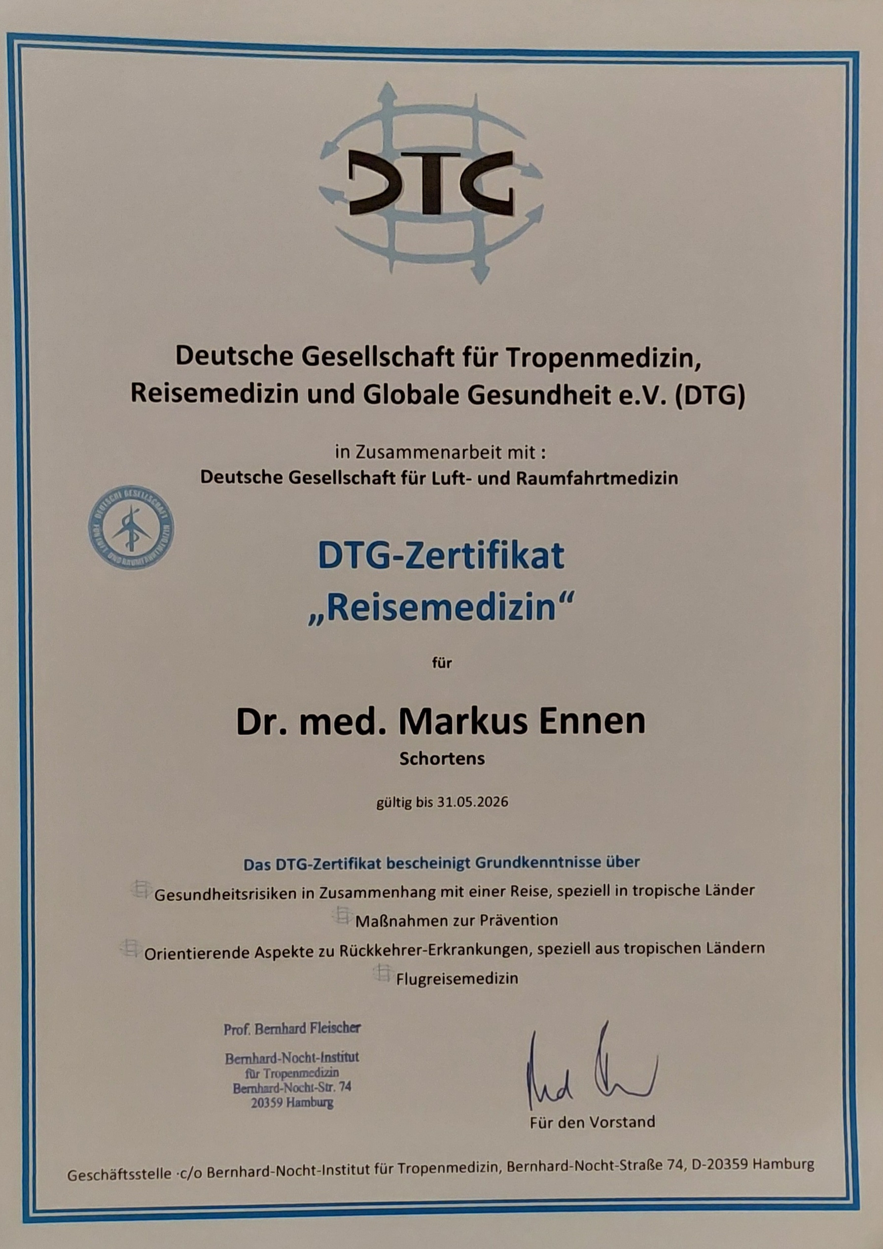 Dr. Ennen betreibt zudem eine staatlich zugelassene Gelbfieberimpfstelle, für die Verabreichung dieser speziellen Impfung.